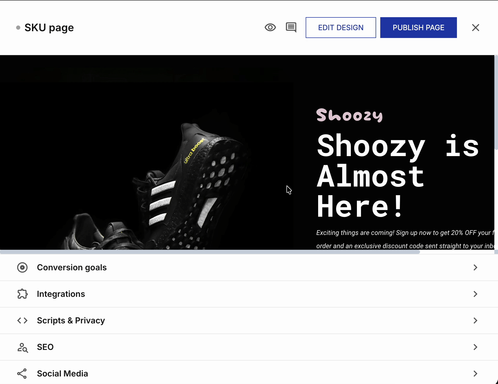 4. Hit Save and then go back to the main slideout to update the page. Clicking on Update Page is mandatory in order for the changes to go live on the URL of the page.